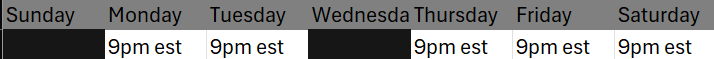 Stream schedule